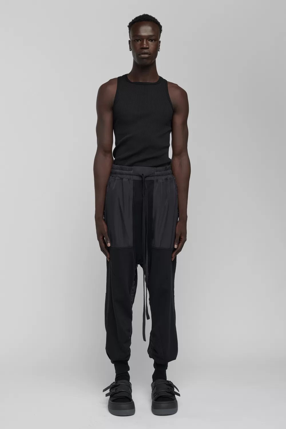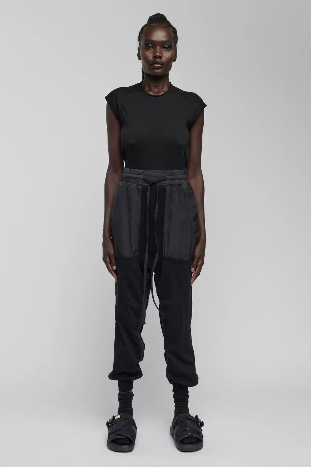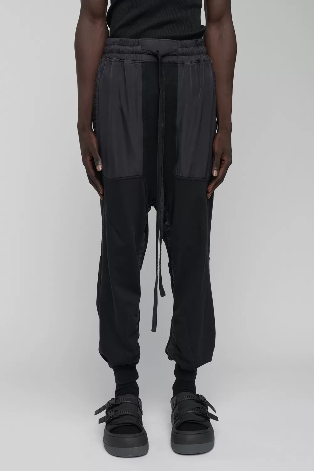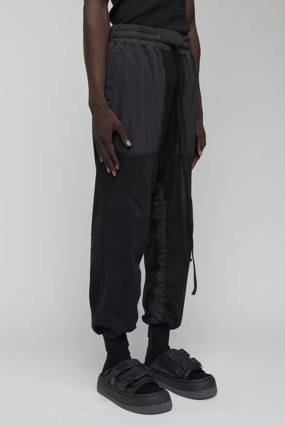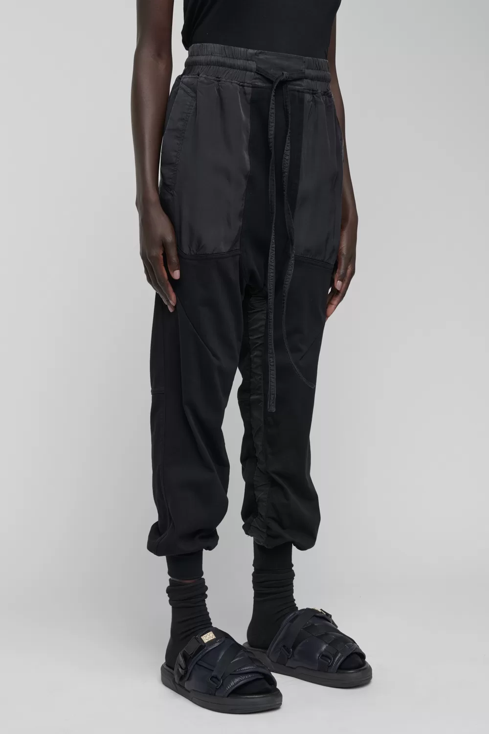 – Compact organic cotton deep-rise sweatpants with tonal cupro trim